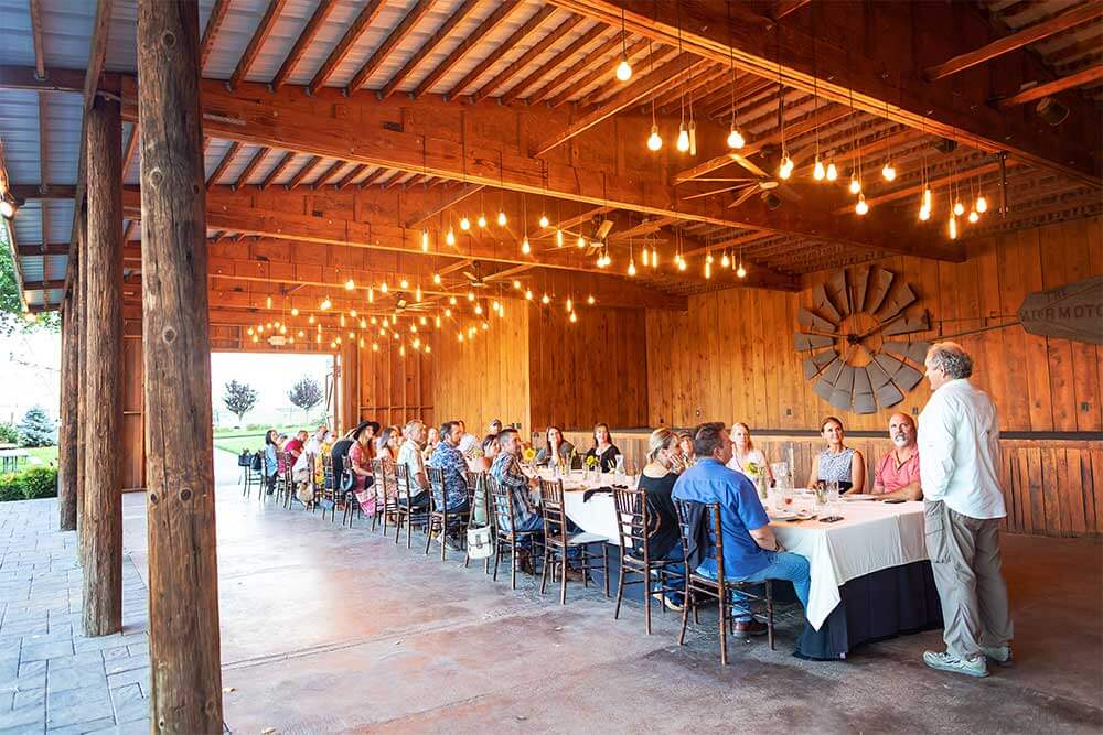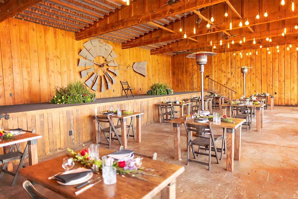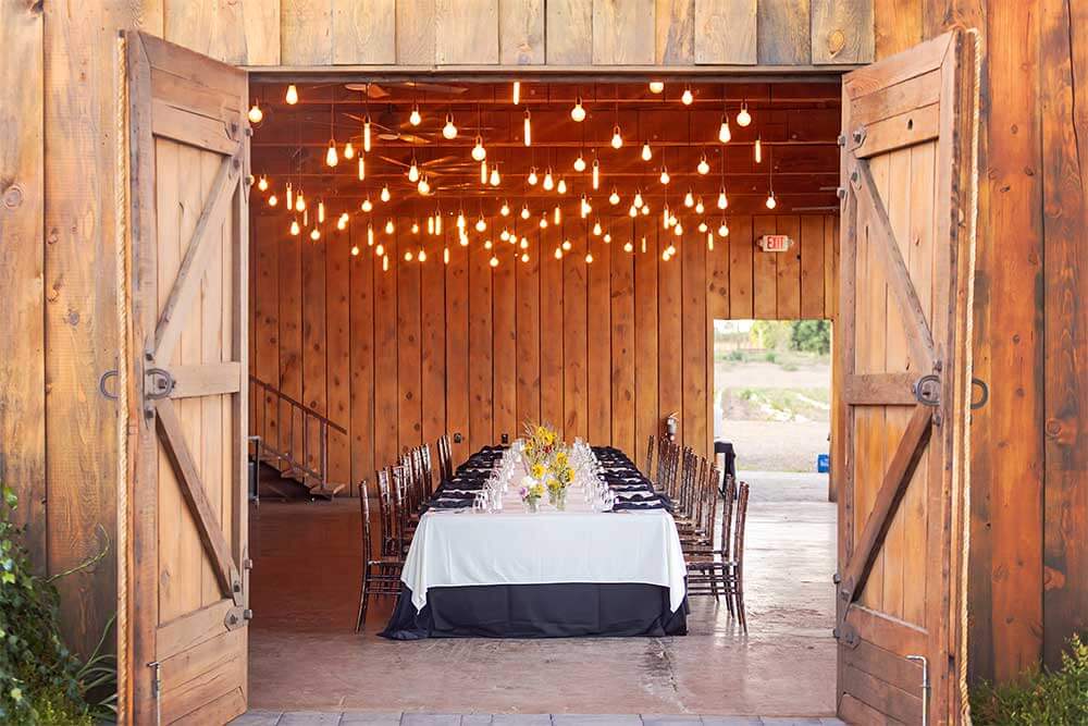 Surrounded by century-old cottonwood trees and lush, green lawns, The Barn is ideal for birthday parties, corporate retreats, showers, reunions, and private gatherings of all kinds. With its cozy lighting, tall barn doors, and open patio space, it’s as inviting as it is unique.