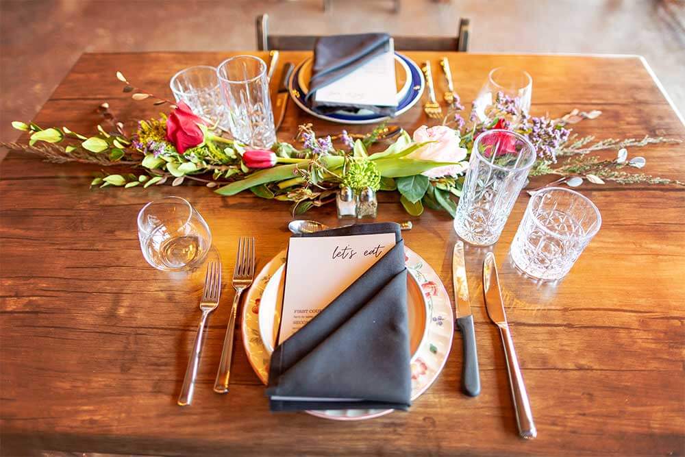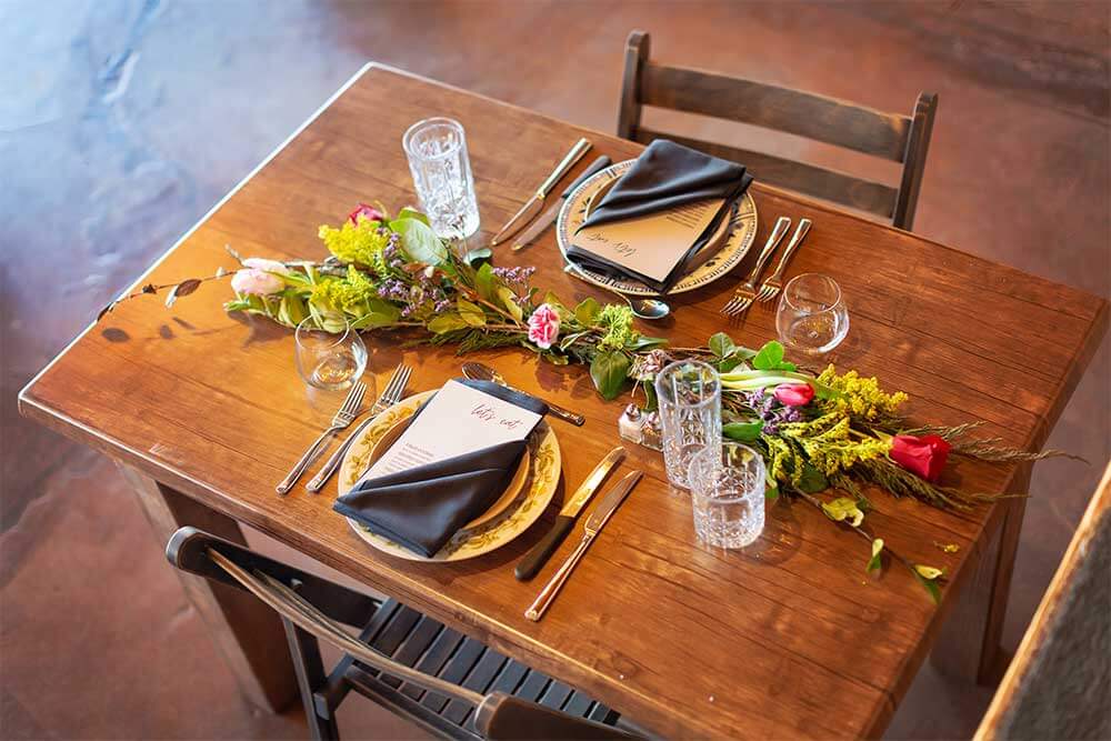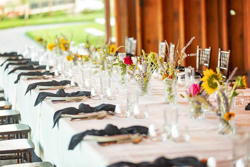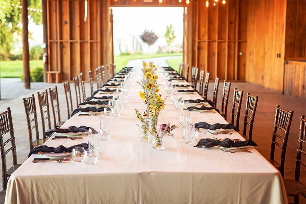 We take care of the details so you can focus on your guests. Each event package includes farm-to-table catering, bar service, round tables with your choice of white or black linens, chairs, designated tables for food, gifts, dessert, and more. You’ll also enjoy elegant tableware, set up and clean up, and a dedicated event host to keep everything running smoothly.