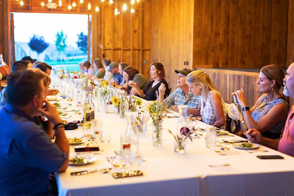 Step into The Barn—our versatile indoor/outdoor venue that offers the best of both worlds: protection from the elements with the warmth and charm of a working farm. Nestled among acres of seasonal crops like sweet corn, pumpkins, flowers, and blackberries, your guests will enjoy breathtaking panoramic views and the true experience of life on the farm.